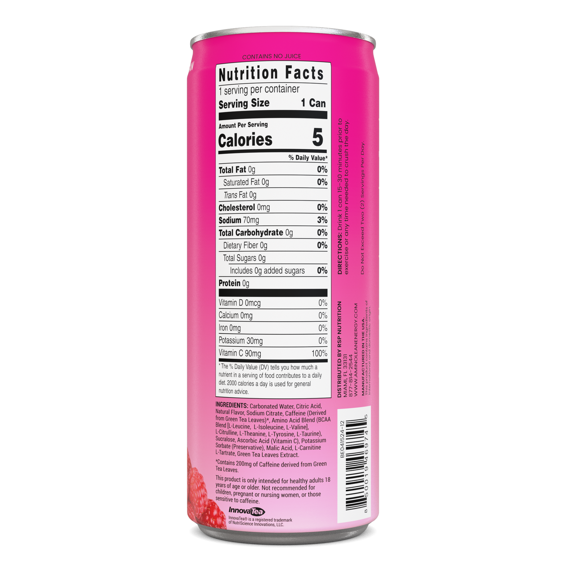 OTHER INGREDIENTS: Carbonated water, Citric Acid, Natural Flavor, InnovaTea® Natural Caffeine, Amino Acid Blend (L-Leucine, L-Isoleucine, L-Valine, L- Citrulline, L-Taurine, L-Theanine, L-Tyrosine), Sucralose, Vitamin C (Ascorbic Acid), Potassium Sorbate (Preservative), Malic Acid, L-Carnitine, Green Tea Extract.