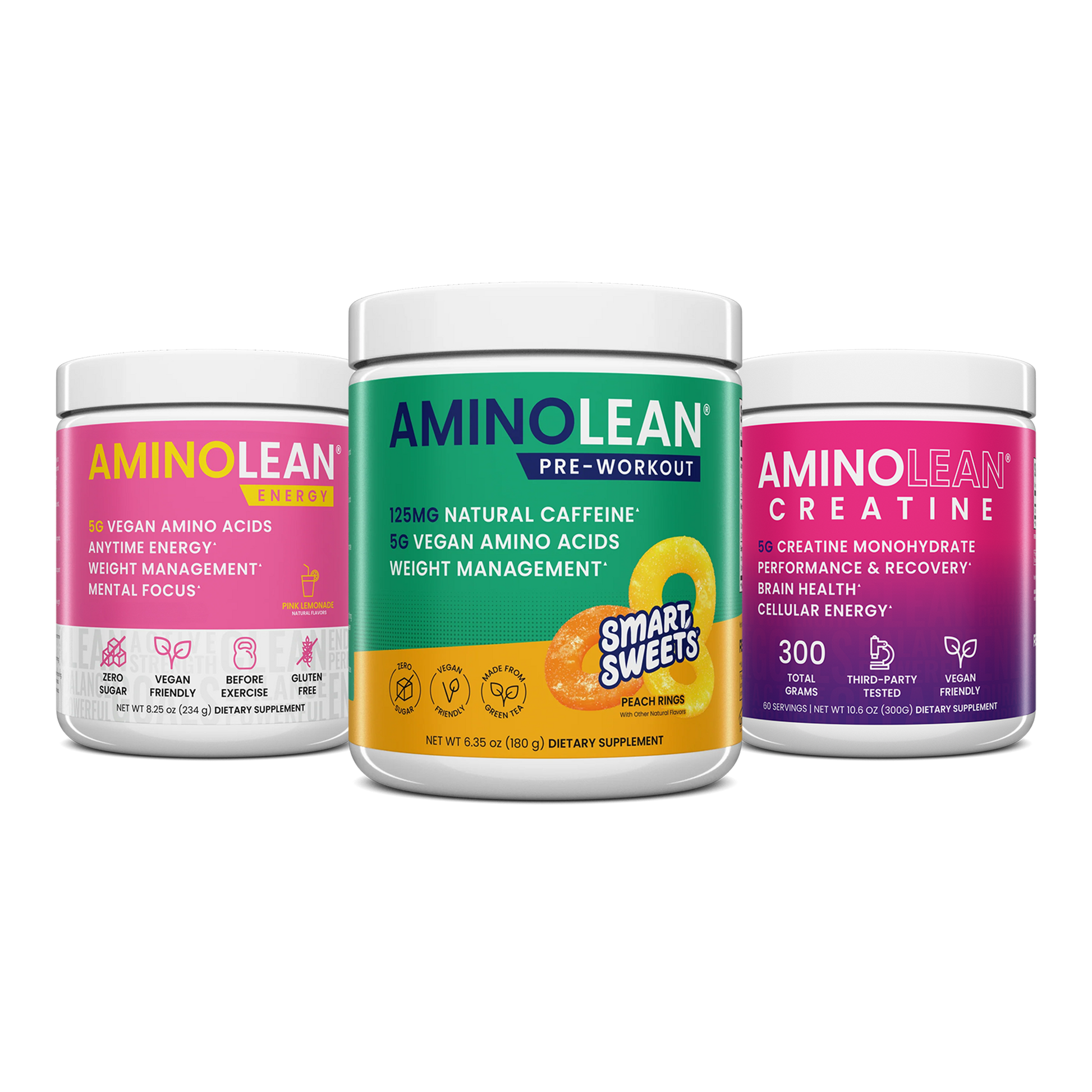 Strength never tasted this sweet. The Summer Strength Stack blends delicious AminoLean Smart Sweets Peach Rings and AminoLean Pink Lemonade with our pure AminoLean Creatine to boost energy, endurance, and recovery. Powered by natural caffeine, amino acids, and real flavor, it’s your go-to for clean workouts and feel-good momentum to help you move, work, and shine all season long.