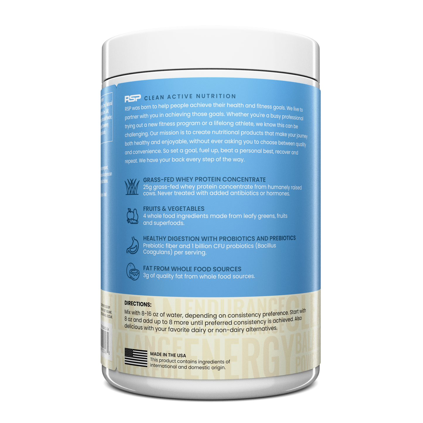 Maximize each workout and recover faster with 25g of grass-fed protein, organic fruits and vegetables, and non-GMO superfoods to replenish your body after exercise.
